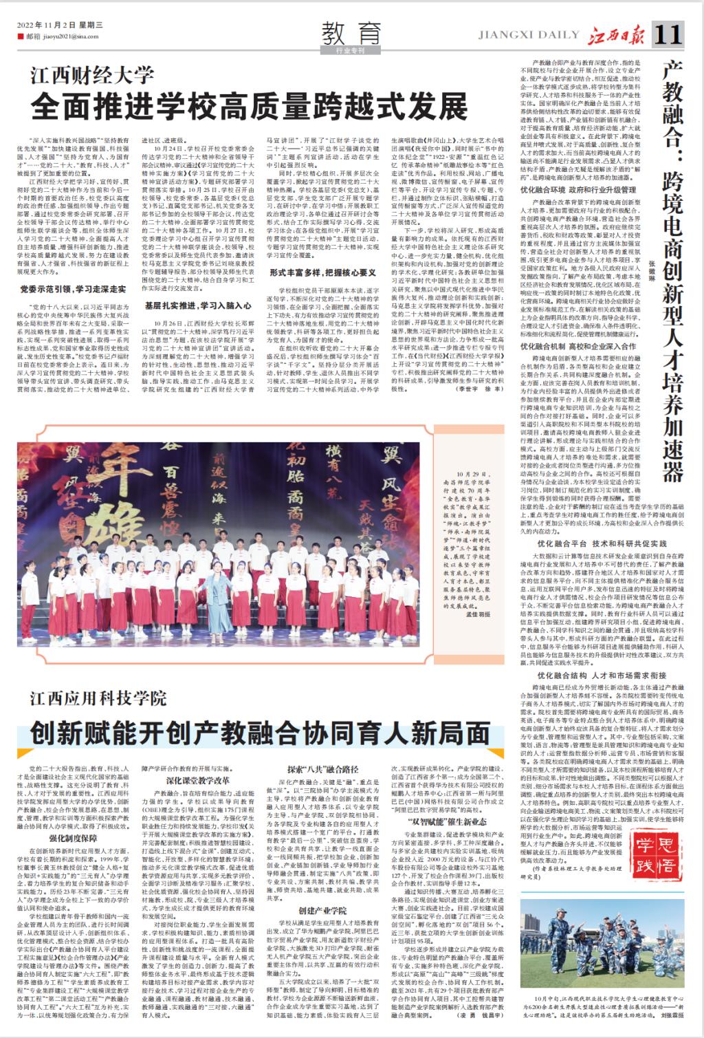 党的二十大报告指出,教育、科技、人才是全面建设社会主义现代化国家的基础性、战略性支撑。这充分说明了教育、科技、人才对于发展的重要性。江西应用科技学院发挥应用型大学的办学优势,创新产教融合、校企合作发展思路,在思想、制度、管理、教学和实训等方面积极探索产教融合协同育人办学模式,取得了积极成效。