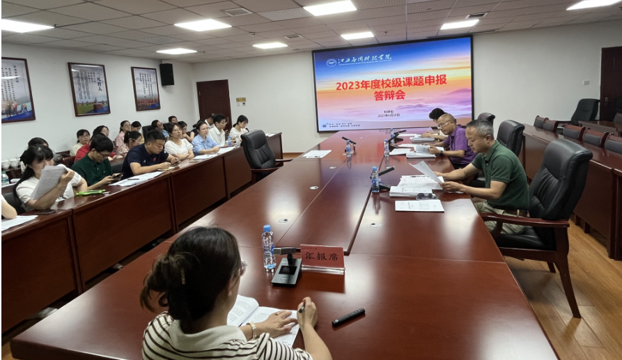6月29日下午,科研处在综合大楼六楼召开2023年度校级课题申报答辩会。此次答辩会邀请的专家分别为江西师范大学王碧英教授,江西警察学院李小强教授、江西财经大学杨建锋教授。会议由周忠伟顾问主持。此次答辩会共涉及课题23项,全校有20余位课题负责人及成员参加了申报答辩会。