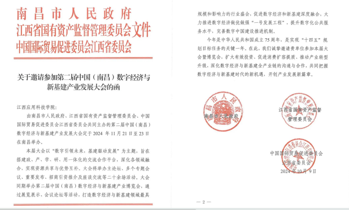 此次参展,江西应用科技学院不仅展示了自身的科研成果和办学特色,更与众多企业和同行进行了深入的交流与洽谈,为未来的合作奠定了坚实的基础。江西应用科技学院将以此次展览会为契机,进一步加强与业界的联系,深化产教融合,建强产业学院,推动科研成果的转化应用,为数字经济与新基建产业的发展贡献更多的智慧和力量。