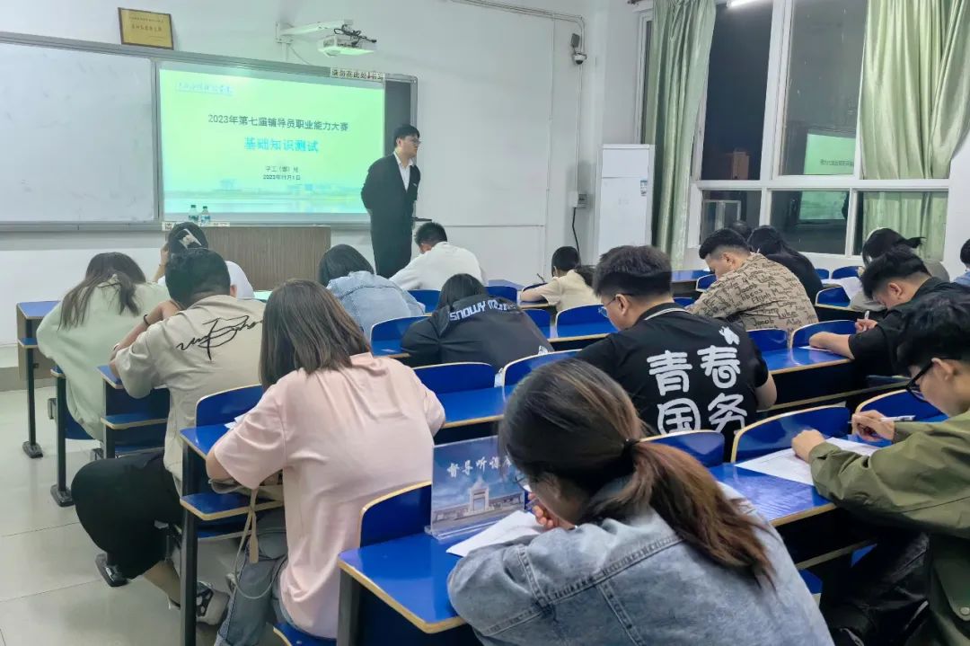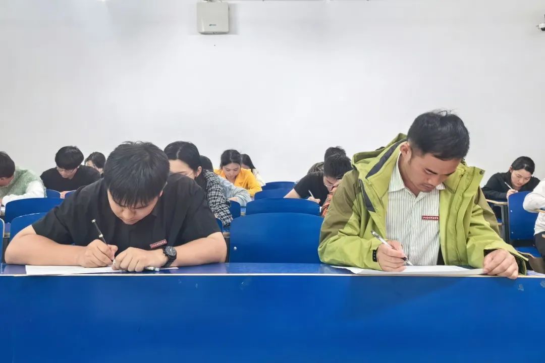 本次笔试为基础知识测试,采取闭卷作答方式,限时90分钟,由单选题、不定项选题、简答题、对策分析题等多种题型组成。测试内容涵盖习近平新时代中国特色社会主义思想、党的二十大精神、学生管理规定、辅导员队伍建设管理规定、高校思想政治工作指导意见、学生党建工作标准等方面内容,重点考察辅导员的理论素养和业务知识。参赛辅导员高度重视,自觉遵守考场纪律,集中存放手机,认真思考、沉着应考,考场秩序井然,充分展示了我校辅导员队伍扎实的理论功底和良好的精神风貌。
