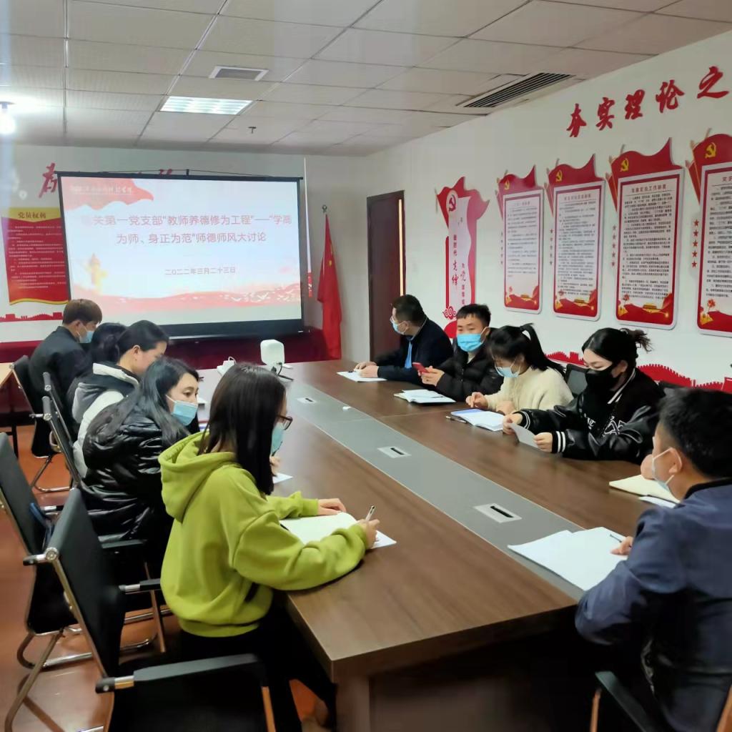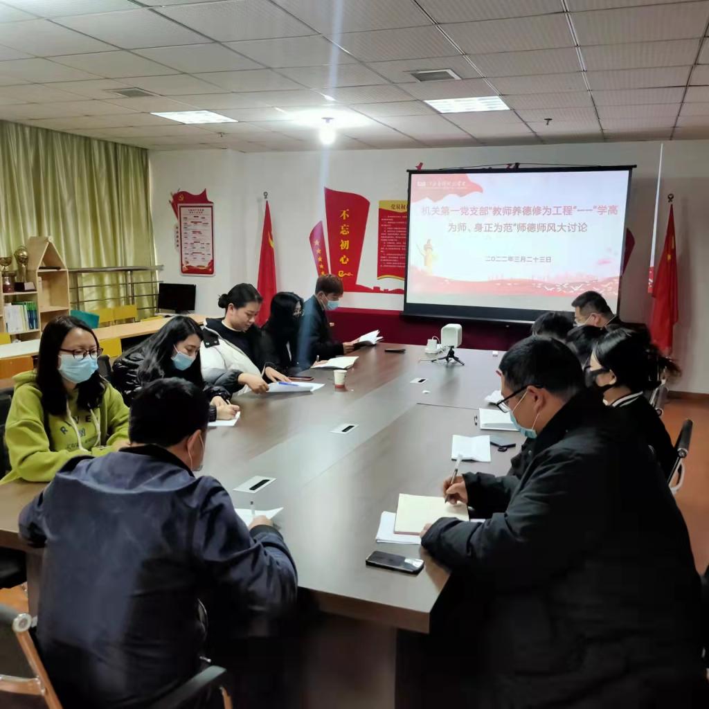 机关第一党支部所有教职员工于2022年3月23日下午15点在综合大楼807室举行“学高为师、身正为范”为主题的师德师风大讨论。会议由机关第一党支部书记王飞同志主持,并解读学校的相关文件要求并阐明了开展“教师养德修为工程”的重要意义,也为今天的会议作了开头,学高为师,身正为范意即身正才能师为人范。他道出了作为一名合格教师,除了要有扎实的专业知识,较高的文化水准外,更重要的是要求教师应有良好的道德素质。陶行知曾指出:“教师的道德品质,不仅是规范自己行为的需要,更重要的是用于教育学生的需要,教师职业的特殊在于育人,不仅用自己的学识育人,更重要的是以自己的德育人,不仅通过自己的语言去传授知识,而且要用自己的灵魂去塑造学生的灵魂。