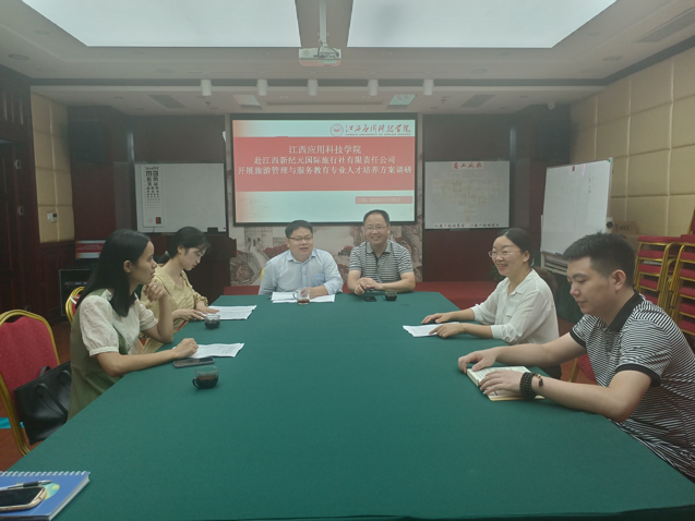现代管理学院旅游管理教研室为进一步完善旅游管理与服务教育专业人才培养方案的修订工作,切实提高人才培养质量,7月19日~25日,学院院长、旅游管理专业带头人谢远健、教研室主任朱玉婷及教研室骨干教师代表一行人,深入南昌金燕温泉酒店有限公司、江西风行国际旅行社有限公司、江西携程国际旅行社有限公司、江西新纪元国际旅行社、江西万达亚细亚国际旅行社、江西怡景国际旅行社、南昌香格里拉大酒店等企业开展人才培养调研。