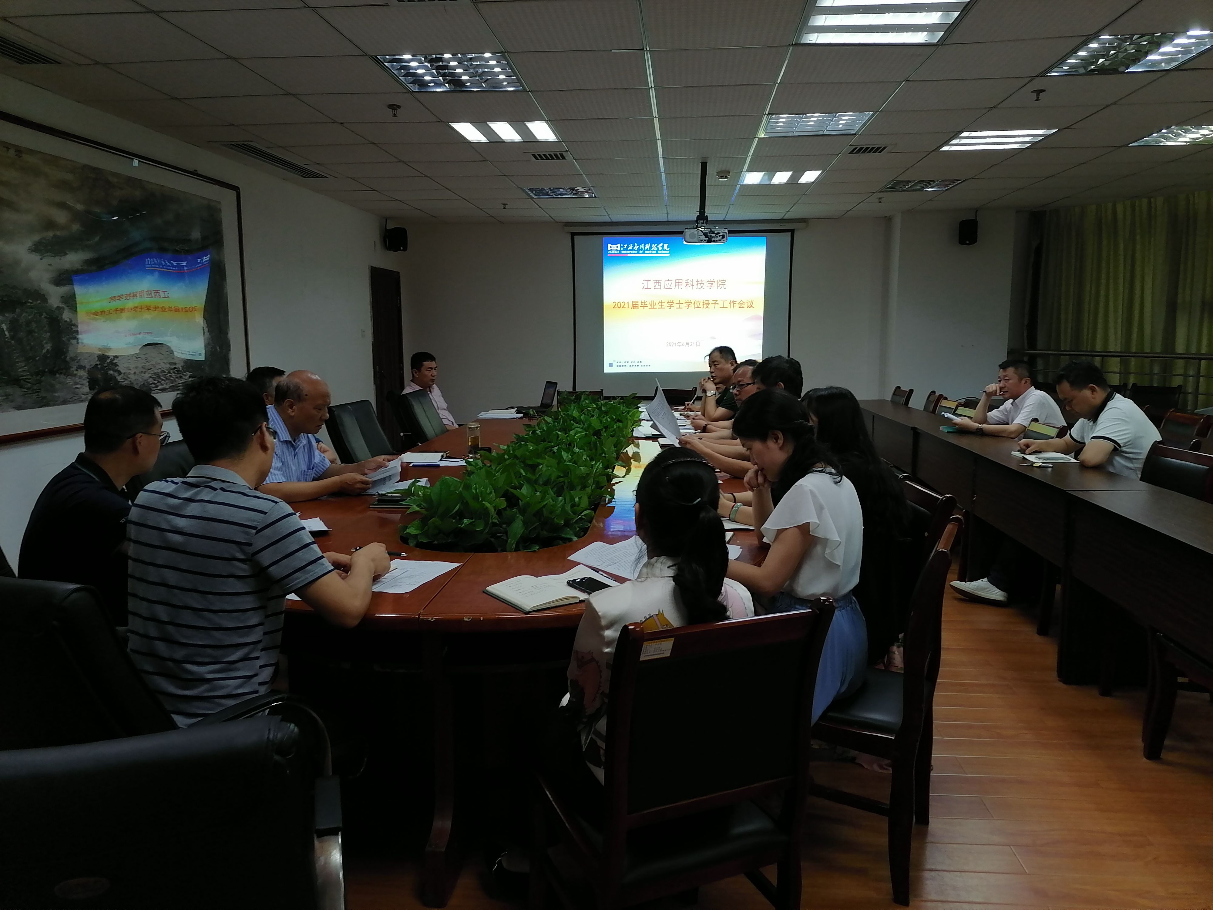 6月21日下午,我校在综合大楼6楼会议室召开校学士学位评定委员会会议,审议、表决2021届本科毕业生学士学位授予决议。会议由学士学位评定委员会主席王胜华主持,校学士学位评定委员会委员参加会议。