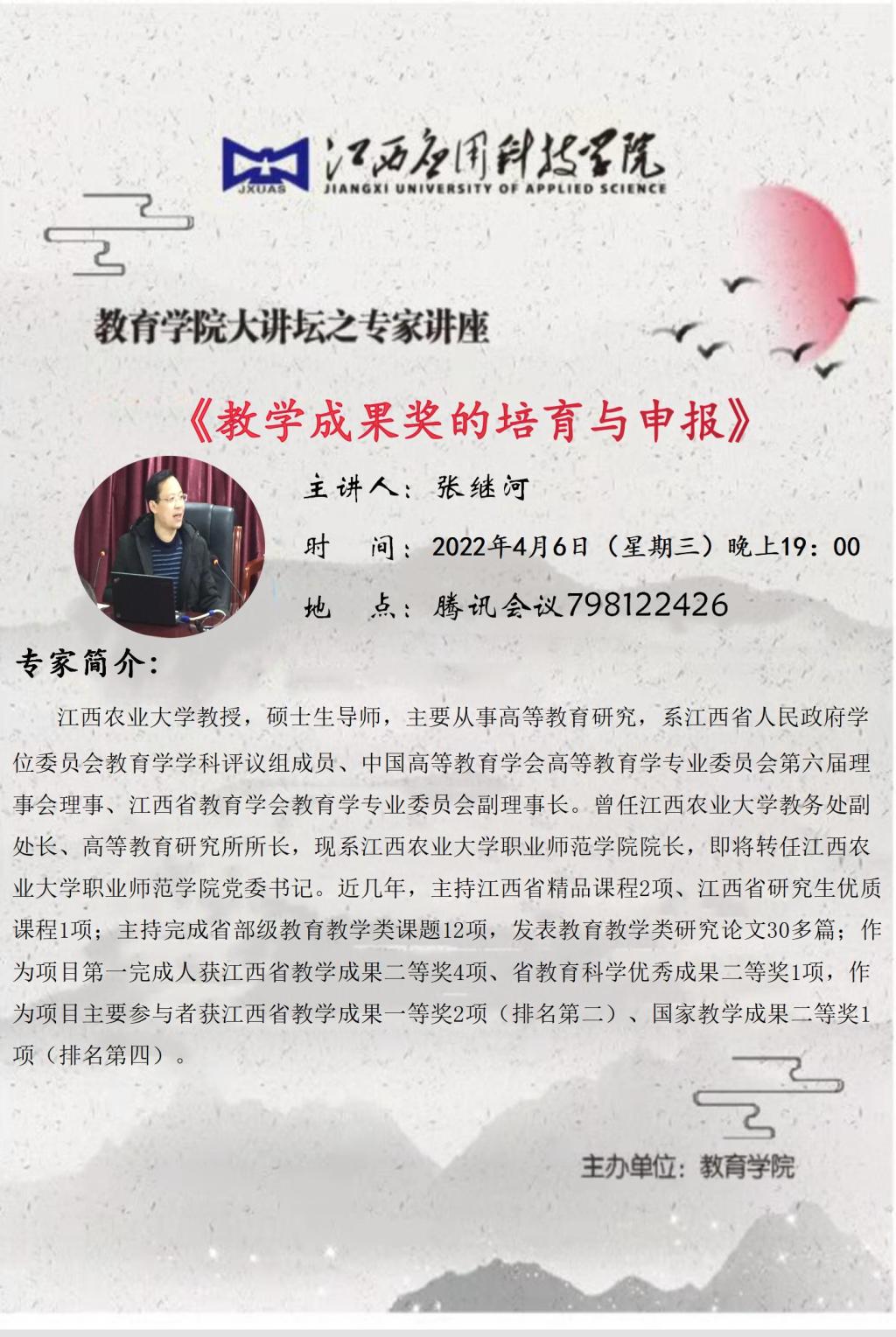 讲座预告:教育学院大讲坛《教学成果奖的培育与申报》