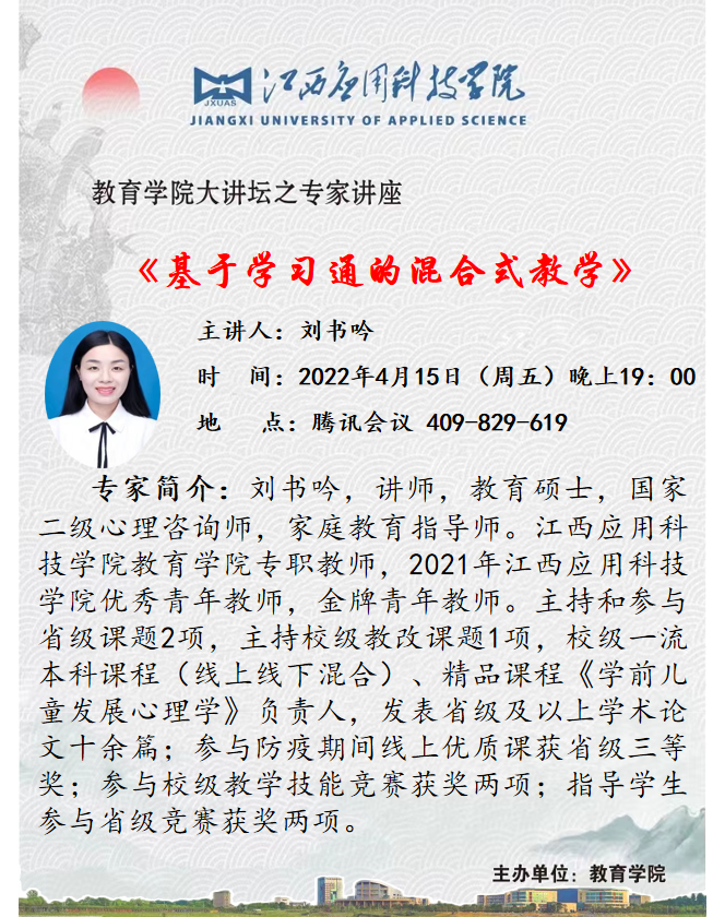讲座预告:教育学院大讲坛《基于学习通的混合式教学》