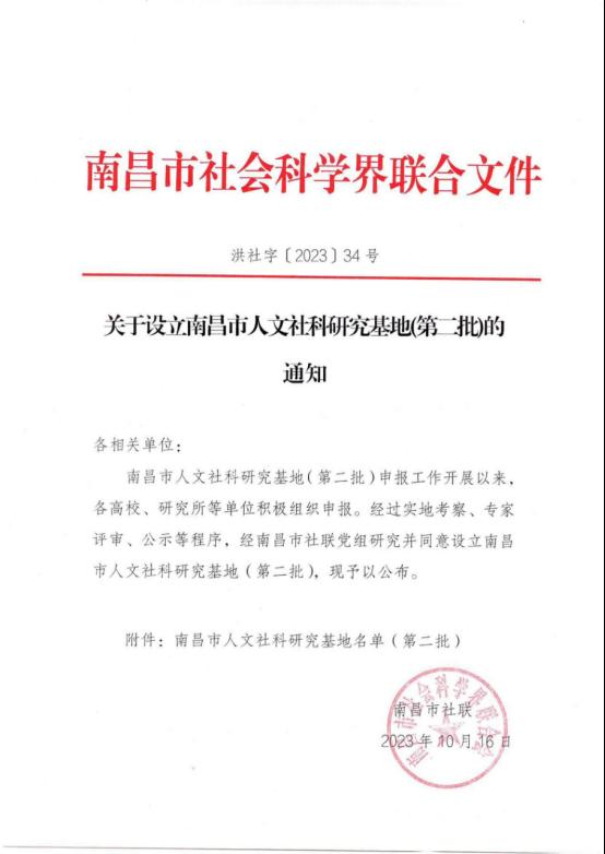 近日,根据南昌市社联公布的《关于南昌市人文社科研究基地(第二批)名单的公示》,学院院长郑昌保申报的“南昌市中小学心理健康教育研究与应用中心”获批南昌市人文社科研究基地。