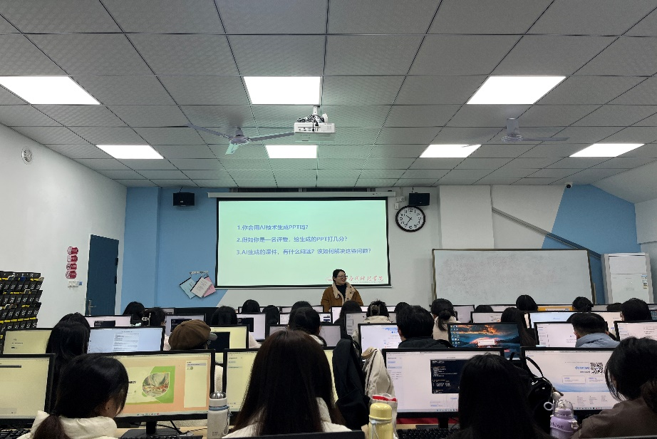 在实践环节,翟老师以“传统文化主题课件制作”为例,带领学生运用AI工具快速生成课件框架,并在此基础上结合课程思政要求,对AI生成的内容进行辩证调整。这一过程不仅提高了学生的技术应用能力,更强化了其在教学中严谨治学、精益求精的职业责任感。
