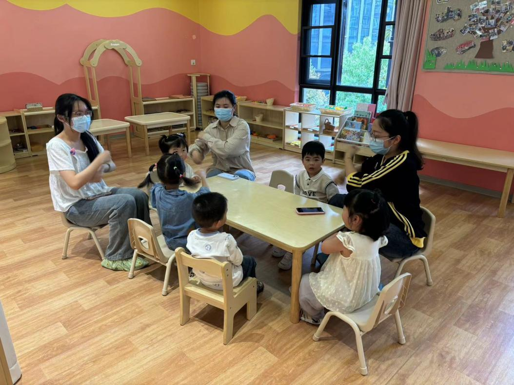 在操作实践中,学生们分组参与托育班级日常照护与互动教学活动。在托育教师的指导下,她们亲身体验洗奶瓶、换尿布、喂午点等照护任务,并将课堂所学的游戏教学法融入互动环节,如手指谣、节奏感知等。学生通过观察婴幼儿行为表现及时调整互动策略,体会“教”与“育”的协同意义,深化了对0-3岁婴幼儿教育关键能力的理解和掌握。