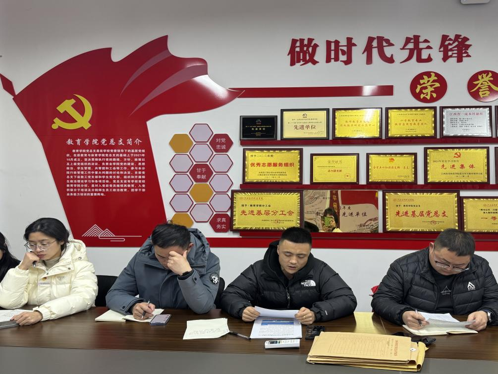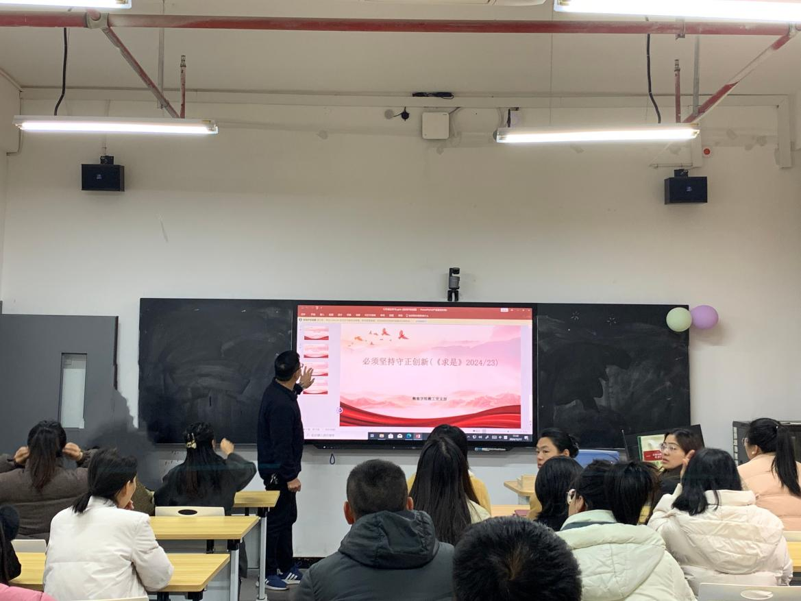 2024年12月19日、12月24日教育学院学生党支部和教工党支部分别在102党员活动室、志远楼208教室召开了学习《求是》杂志发表的习近平总书记重要文章《必须坚持守正创新》理论学习会议。会议分别由教育学院学生党支部书记谢承儒和教工党支部书记沈友华主持,各党支部师生党员参加此次理论学习会。