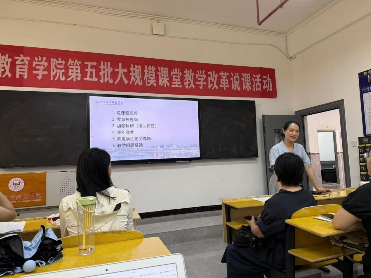 2025年9月16日,教育学院学前教育教研室召开学期工作会议,教研室全体教师参会,教研室主任陈会会老师主持会议,围绕课程建设、资源创作、科研竞赛等重点工作展开部署,明确新学期工作方向。 会议开始,刘淼、闫婷、贾林静三位老师先后进行说课,对自己的课程建设进行分享。三位老师结合本学期授课实际,从课程目标定位、内容体系优化、实践环节设计等方面展开阐述,提出将幼儿园真实教学案例融入课堂、调整实训模块占比等具体建议,为教研室课程质量提升提供实践参考,引发在场教师热烈讨论。