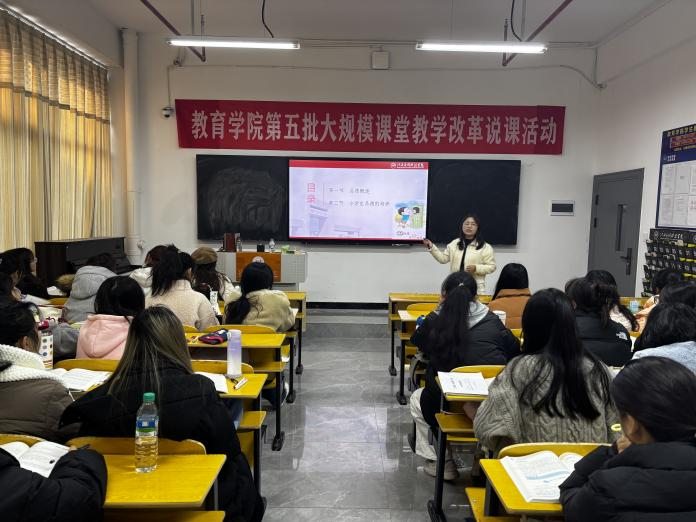 2025年12月8日上午,教育学院小学教育教研室在志远楼107开展了本学期第七次课堂教学示范活动。本次活动由张婷老师主讲,本节课以“七环相扣、双向统一”为核心教学特色,通过创新的教学模式将专业知识传授与价值引领有机结合,为在场师生呈现了一堂兼具思想性与实践性的教育示范课。公开课内容清晰划分为两大板块。第一板块围绕“品德的概述”展开,重点剖析了品德与道德的辩证关系,帮助学生厘清概念边界的同时,建立起对品德内涵的宏观认知。第二板块则深入解读品德心理结构的“知、情、意、行”四大组成成分,通过理论阐释与实例分析,让学生理解品德形成的心理机制。
