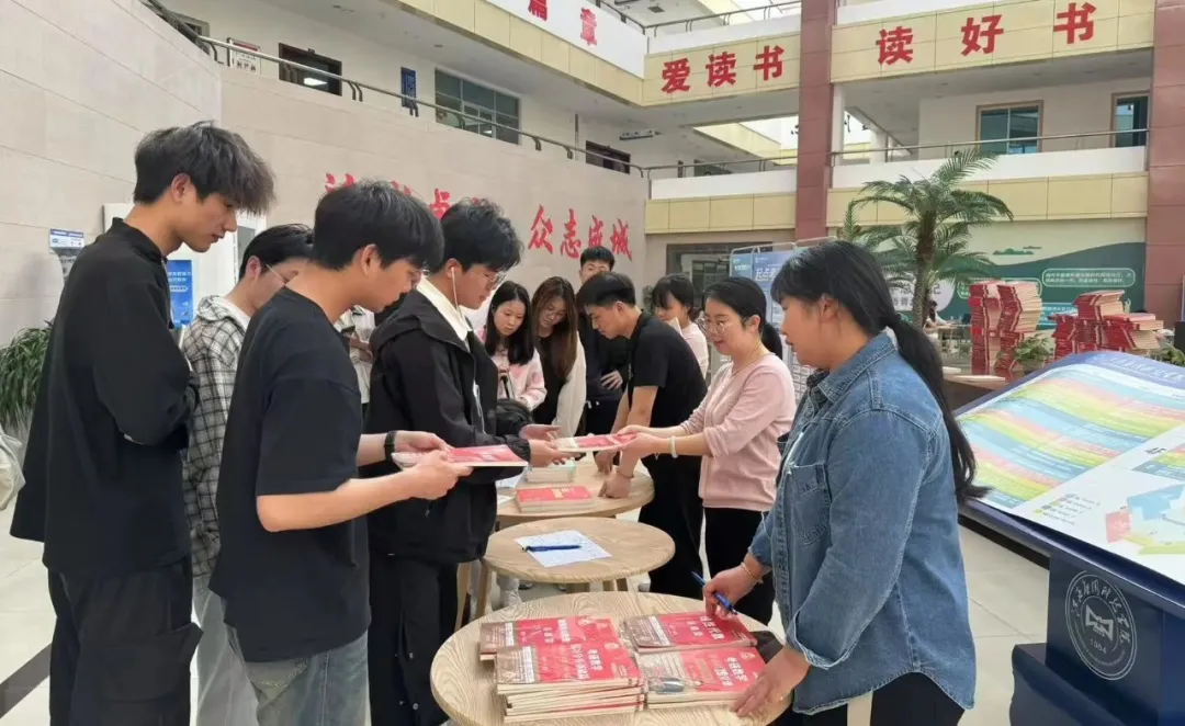 2025.04.23为助力我校学子考研征程,图书与档案信息中心于4月8日下午在图书馆一楼大厅举办“应科馆韵,筑梦研途”考研赠书活动。本次活动共赠送了包括《考研数学复习全书》《考研英语翻译四步法》在内的9类共计45册备考图书资料。
