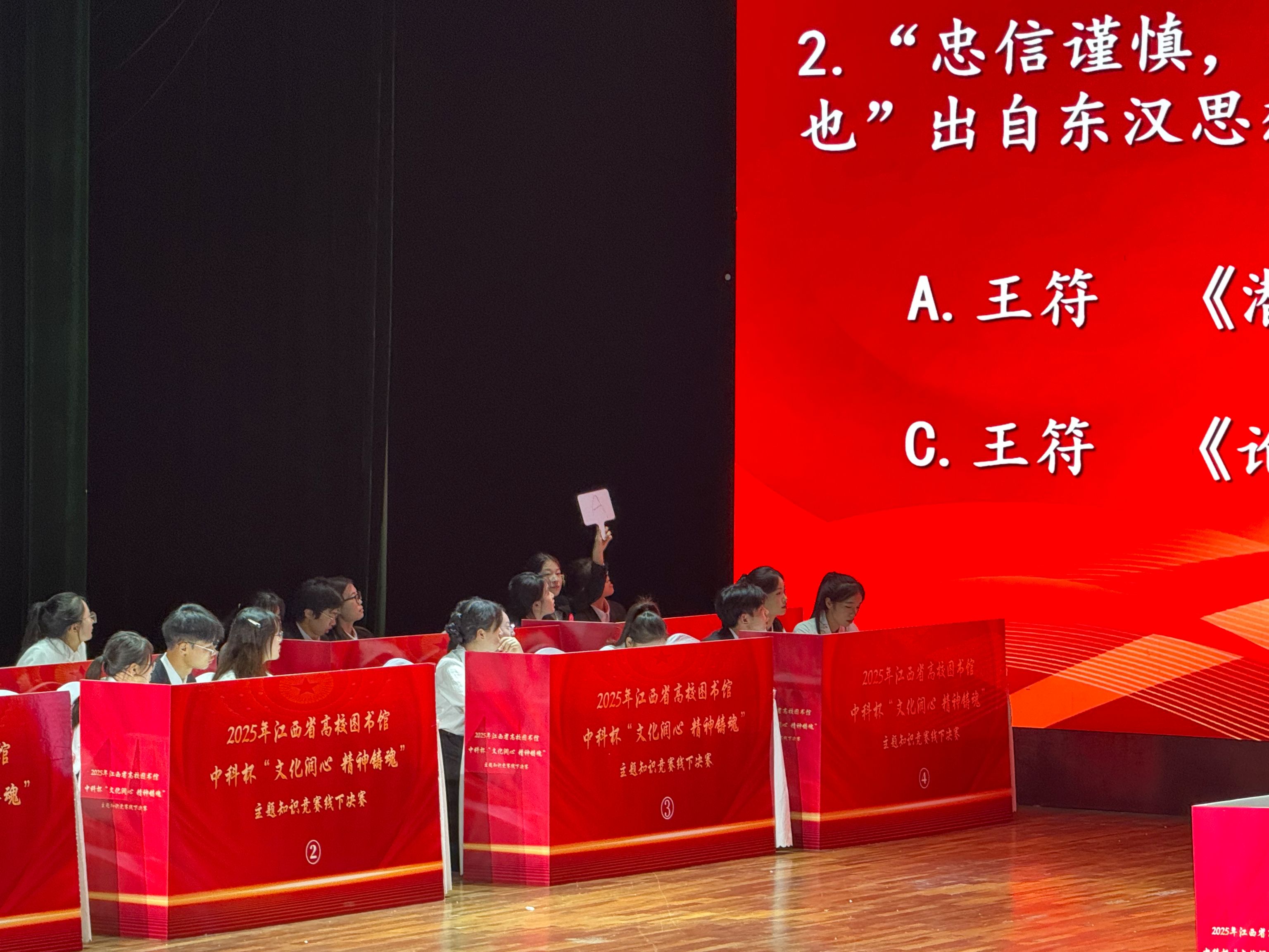 2025年9月-11月,江西省高校图工委联合省内高校成功举行“江西省高校图书馆·中科杯‘文化润心 精神铸魂’主题知识竞赛”活动。经过初赛和决赛的激烈角逐,按照比赛规则,我校在本次活动中荣获优秀组织奖,教育学院邱微、经济管理学院李有花和彭欣三位同学代表我校参加线下决赛,并荣获本次竞赛三等奖,同时,我校共有8位同学获优秀奖。