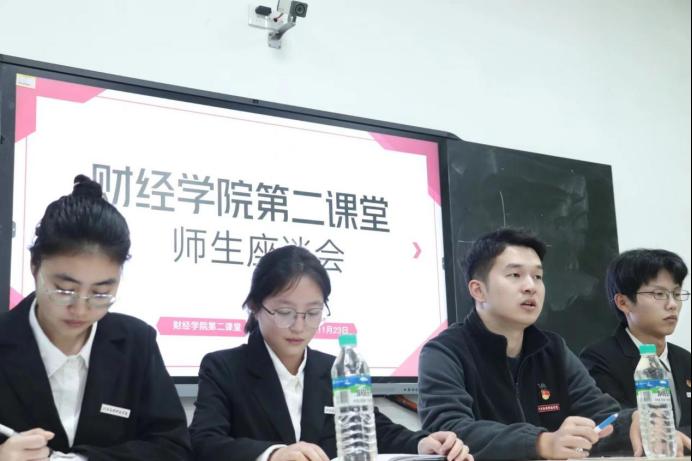 为了更好地开展第二课堂相关活动,了解第二课堂活动开展情况,拓展同学们的第二课堂。同时也为师生提供一个交流和沟通的平台,让师生可以更好地互动和合作,共同推动第二课堂活动的开展。财经学院于2023年11月23日晚上7:30在行知楼126召开了师生座谈会暨部门例会。参会人员有财经学院第二课堂指导老师吴宜安、财经学院第二课堂代理负责人、财经学院第二课堂干事和各班二课负责人。