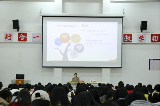 为进一步加强学院与小学(幼儿园)的交流与沟通,深化“院-园、院-校”协同育人机制,发挥名校(园)长、名师及其团队的教学引领与指导作用,强化学院师生对基层小学(幼儿园)师资需求和课堂教学改革的清醒认识,加深学生对小学(幼儿园)教师专业知识、专业技能和教育情怀的认识和理解,提升学生的责任意识和专业使命感,11月25日学院在志远楼101报告厅举行了第十二期“小学(幼儿园)名校(园)长、名师进课堂”活动,本次授课嘉宾为江西科技师范大学家庭教育研究中心副主任、人民网人民德育家庭教育专家委员会顾问、江西教育学会常务理事李菁莹老师为学院2021级、2022级、2023级小学教育和学前教育专业的学生作《儿童心理健康疏导实例分享》主题讲座,学院副院长刘晓领主持讲座。