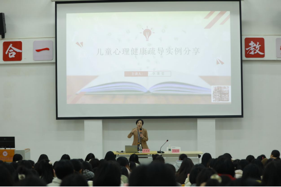 李老师强调,孩子往往因为喜欢老师而喜欢某一学科。师生关系融洽,教育自然就会进入良性循环。李老师鼓励全体师生,在今后从教阶段要鼓励家长朋友要做家庭和学校之间的润滑剂,要向老师传递孩子对他的喜爱,也要向孩子传递老师对他的认可。随后李老师详细介绍了小学生心理健康障碍的成因、表现及应对策略。她用实例说明,小学生心理健康多由原生家庭、学业等多种因素引发,表现为情绪低落、失去兴趣、抗拒、失眠、自我评价降低等症状。她强调,对于小学生心理健康障碍,家庭因素是关键。