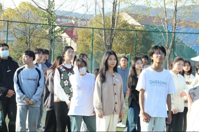 随后同学们自由分组,排成6列纵队,由队内队友自由选出队长和副队长,辅助老师完成后续活动,最后以小组积分高低的形式来选出决胜队伍。