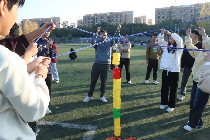 作为当代大学生,不仅要学习新思想,争做新青年,还要学会团队合作。习近平总书记强调,要坚持不懈促进高校和谐稳定,培育理性平和的健康心态,加强人文关怀和心理疏导,把高校建设成为安定团结的模范之地。心理健康教育是提高大学生心理健康素质、促进其身心健康和谐发展的教育,是高校人才培养体系的重要组成部分,也是高校思想政治工作的重要内容。为此,11月27日下午,财经学院在星洲运动场举办2023级心理素质拓展活动,全体23级新生心理委员(含专升本新生)及全体心理协会成员参加了本次活动,邵竹君老师主持活动。
