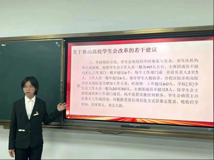 学生会宣讲团对学生会的组成以及基本情况的介绍,带领学生们深入了解其章程,怀鸿鹄之志,展骐骥之光。