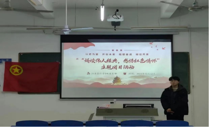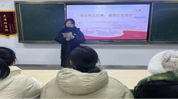 习近平总书记说,“回望过往历程,眺望前方征途,我们必须始终赓续红色血脉。”作为新时代的青年人,每一位同学都要向革命先烈学习,学习他们艰苦奋斗、顽强拼搏、积极进取、不怕牺牲的精神。时代在变,但奋斗的底色不变,青年的梦不变。红色的初心永远照耀着中华的大地,燎原的星火终会点亮理想的光芒。为此,财经学院各团支部特此召开“诵读伟人经典,感悟红色情怀”主题团日活动。