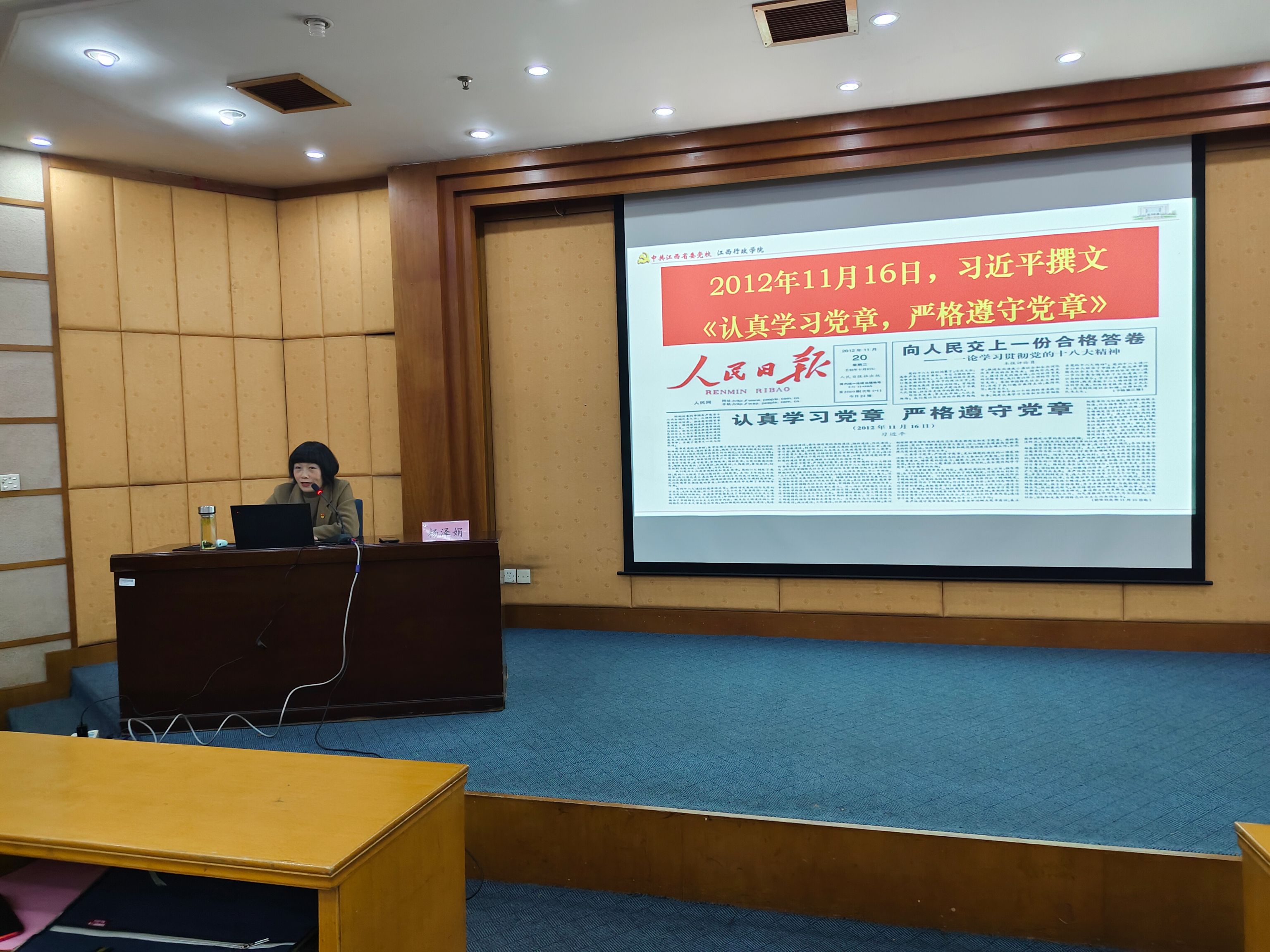 杨泽娟教授从党章修改的必要性和重要性、党章的内容和要求、党章的学习和贯彻三个方面进行了深入系统的讲解。她表示,一是要坚持马克思主义基本原理同中国具体实际相结合,同中华优秀传统文化相结合;二是要充分认识马克思主义时代化中国化的理论成果来之不易;三是深刻认识党的理论和理论创新成果的重要意义和价值;四是要自觉尊崇党章、学习党章、遵守党章、贯彻党章、维护党章,切实把党章各项规定要求落实到行动上。