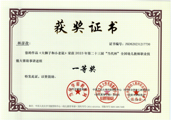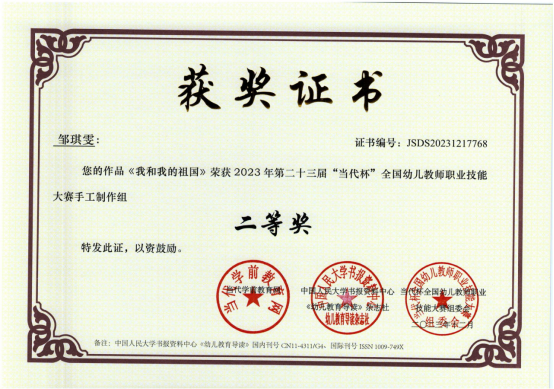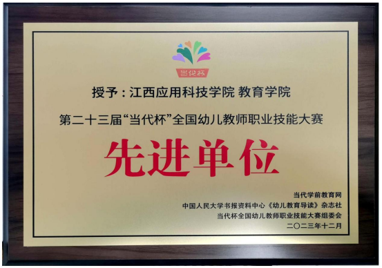 近日,由当代学前教育网、中国人民大学书报资料中心《幼儿教育导读》杂志社(中国幼教核心期刊,国内刊号CN 11-4311/G4、国际刊号ISSN 1009-749X)联合主办的第二十三届“当代杯”全国幼儿教师职业技能大赛获奖名单揭晓,学院学前教育专业学生分别参加了环境创设、教案、故事讲述、论文、课件比赛等项目,获得一等奖11项、二等奖17项、三等奖16项、优秀奖6项,学院获得先进单位。