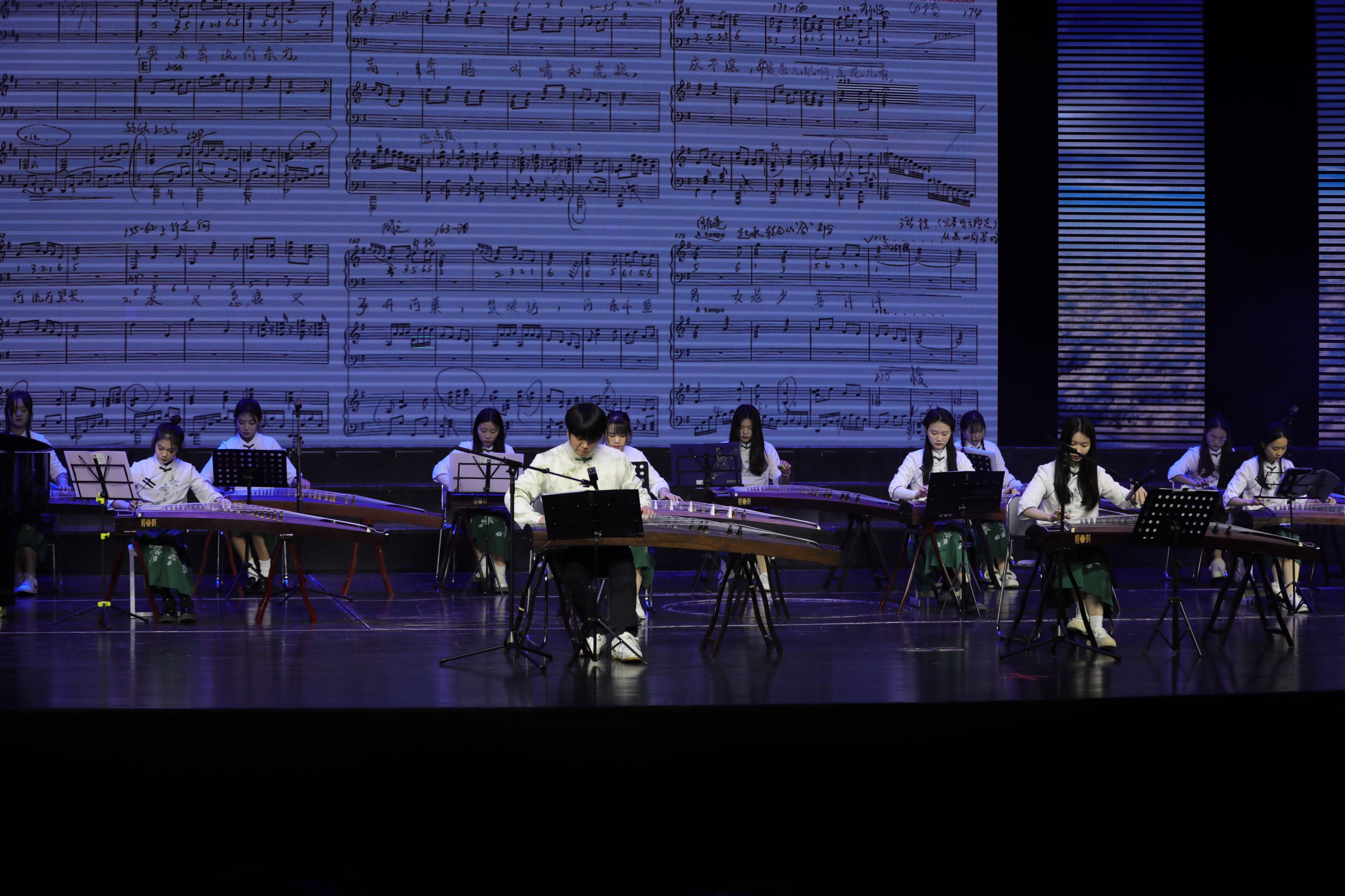 专业课教师指导过程中指出,《黄河》的创作正值抗战相持阶段,在演奏过程中用花指、刮奏的形式,控制节奏和音的强弱变化表现乐曲的情感,用古筝弹奏展现出了在中国共产党的领导下抗日军民与日寇长久战斗的意志与决心。