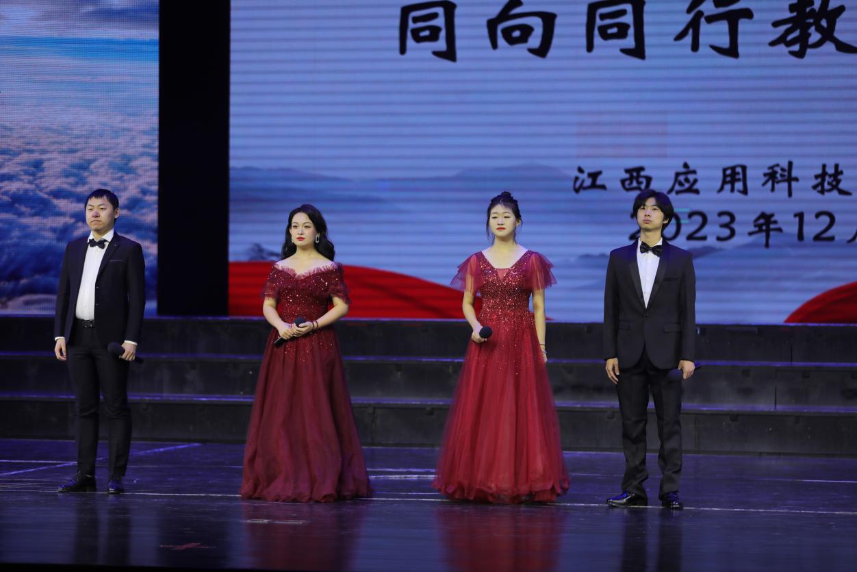 为深化“大思政课”建设,为充分发挥教师队伍“主力军”、课程建设“主战场”、课堂教学“主渠道”作用,使各类课程与思政课程同向同行,形成协同效应,发挥“课程思政”培育时代新人的积极作用。12月20日,江西应用科技学院马克思主义学院与音乐学院联合开展“思政课程”与“课程思政”同向同行教学汇报活动。以“双师同堂”、“师生同台”、“专题+思政”等创新形式合作呈现。