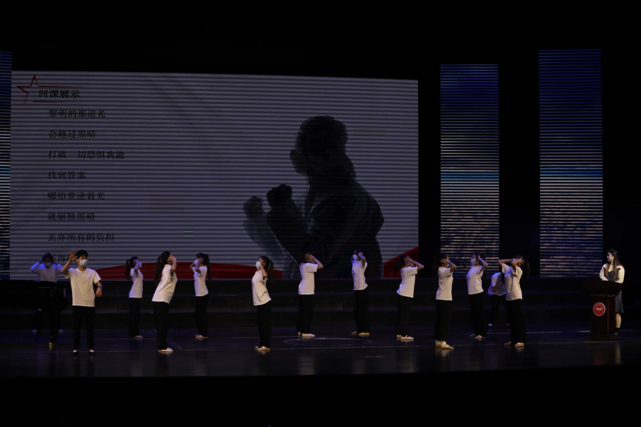 专业课教师编排舞蹈《抗疫》,舞蹈是肢体语言,教师引导学生怎么用肢体语言去创作和表达,例如迷茫、开心、焦虑等情绪,应以什么样的动作来完成。这个作品主题应用极具张力的肢体来表现人们面对疫情有过恐慌害怕、焦虑悲伤、同时更要坚定信念拥抱希望,团结一致赢得胜利,还要展现对不辞辛劳的医护人员和坚守在各个平凡岗位的工作人员致以崇高敬意,致敬疫情期间的最美逆行者。