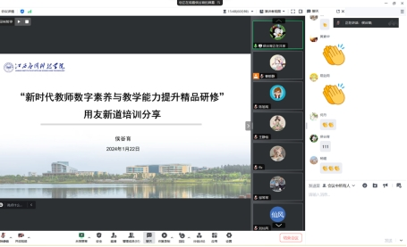2024年1月22日晚,财经学院召开了主题为“新时代教师数字素养与教学能力提升精品研修”的线上分享会,院长揭志锋、副院长漆圆方带领全体专任教师参与会议,会议由金融工程教研室主任曹郁静主持。