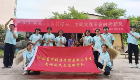 财经学院组织新时代文明实践志愿服务队,于7月1日赶赴宜春市奉新县陶仙村,用行动展现青春风采,开展文明实践活动,促进乡村和谐发展,大力推进农村精神文明建设。