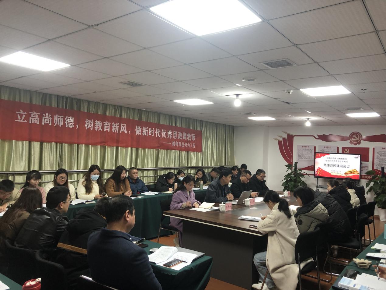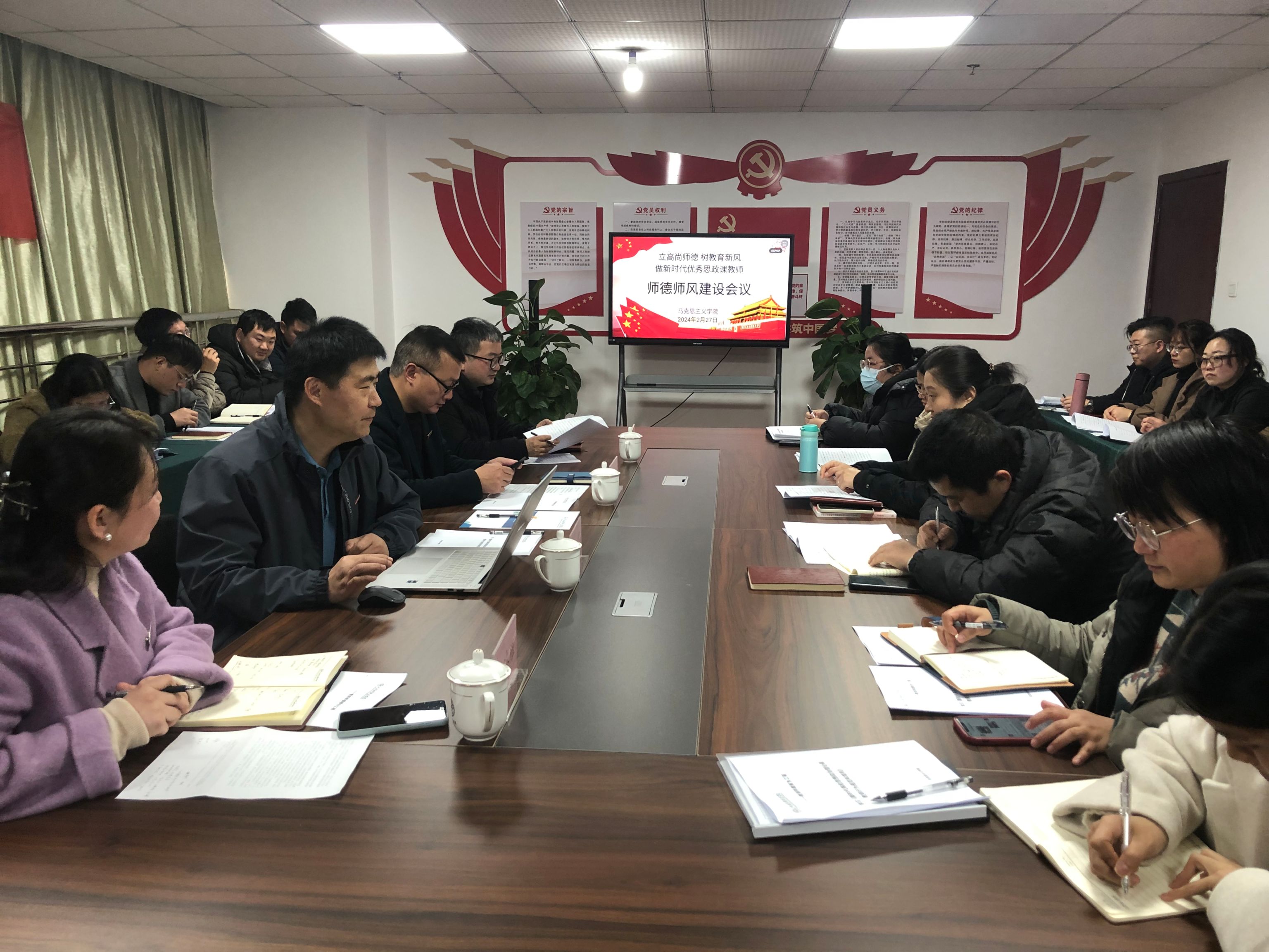为切实加强师德师风建设,不断提高教师思想道德素质,引导教师坚定自身初心和育人使命。2月27日,马克思主义学院召开以“立高尚师德,树教育新风,做新时代优秀思政课教师”为主题的师德师风建设会议。校党委副书记、纪委书记江星,人事处、党委教师工作部处(部)长张作霖,马克思主义学院院长于冰雁、副院长胡杏根及全体思政课教师参加会议。会议由马克思主义学院院长于冰雁主持。