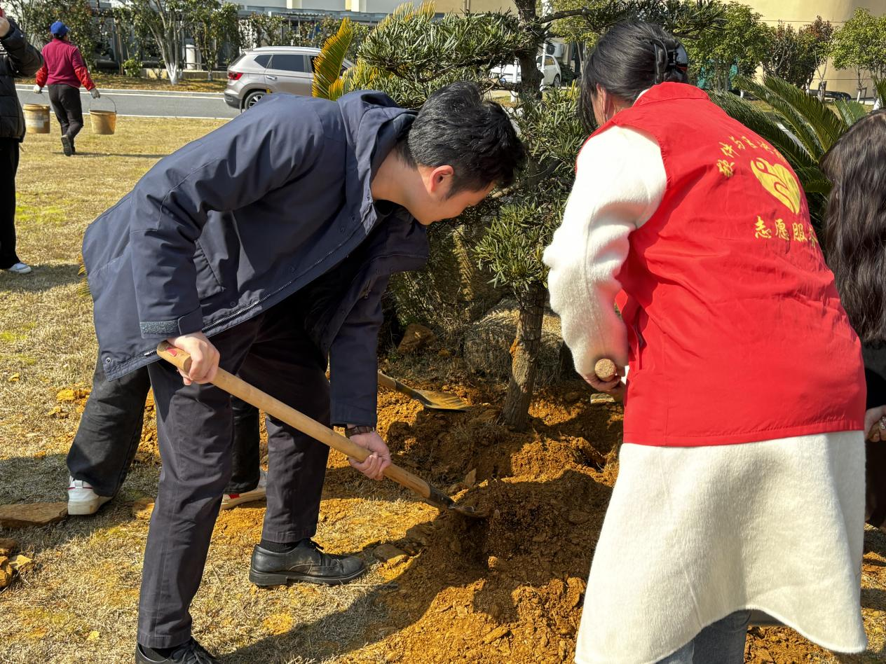 江星书记及学院师生一同来到音乐厅附近植树点,大家挥锹铲土,提水浇灌,齐心协力,现场一派繁忙景象,气氛热烈。在植树的过程中江星书记与学院师生进行亲切交谈,他谈到,今天是3.12植树节,学院组织这次活动很有意义,用实际行动来践行“绿水青山就是金山银山”的理念。学校环境优美,整洁干净,我们要爱护学校的一草一木,保护好学校的环境,让学校全体师生在这里愉快地工作学习。