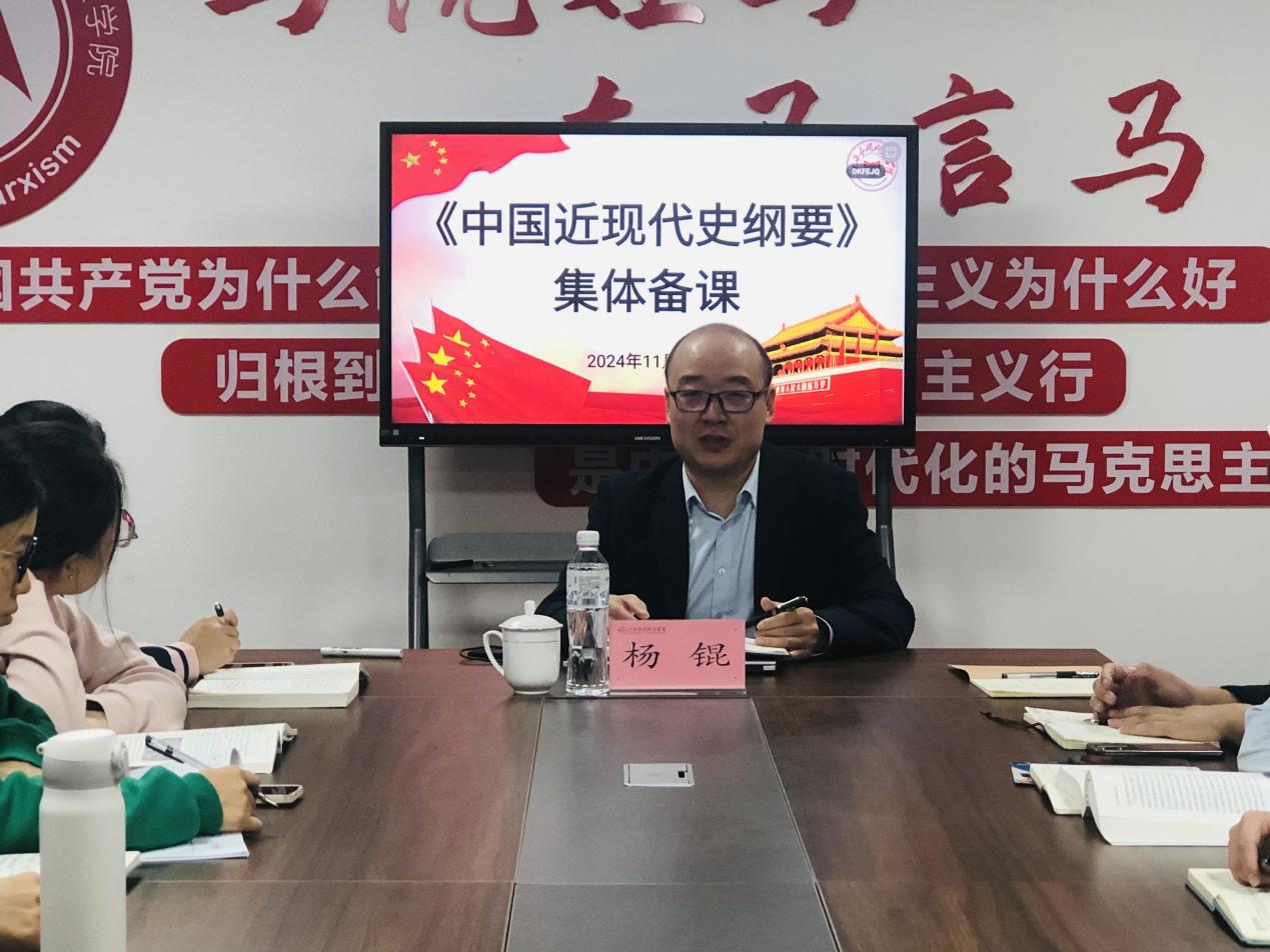 为了更好开展《中国近现代史纲要》课程的教学工作,提升思政课教师教育教学质量,2024年11月3日上午9:00,“中国近现代史纲要”教研室于综合楼807会议室进行集体备课会。此次会议由王莉老师主持,特邀河南科技大学马克思主义学院杨锟教授与会进行课程建设指导,承担《中国近现代史纲要》课程的全体教师参加。