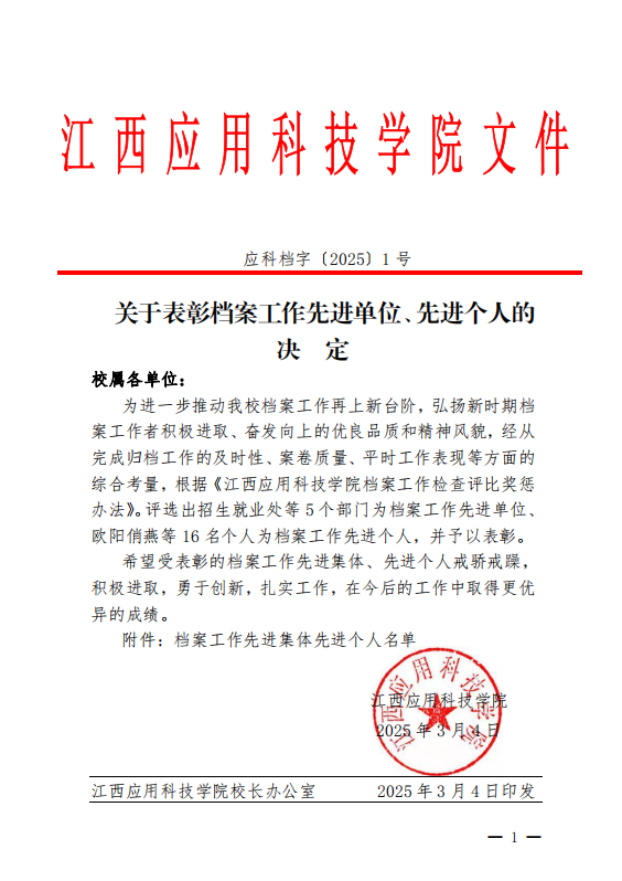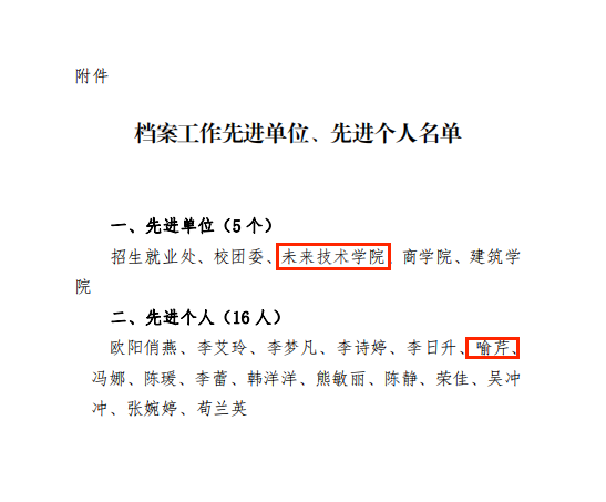 此次荣获档案工作先进单位称号,是对学院档案管理工作的高度认可和肯定。学院将以此为契机,进一步总结经验,发扬成绩,不断提升档案管理人员的业务能力和服务水平,积极探索档案管理的新模式、新方法,推动档案管理工作再上新台阶,为学校各项事业的发展提供更加坚实有力的支撑。