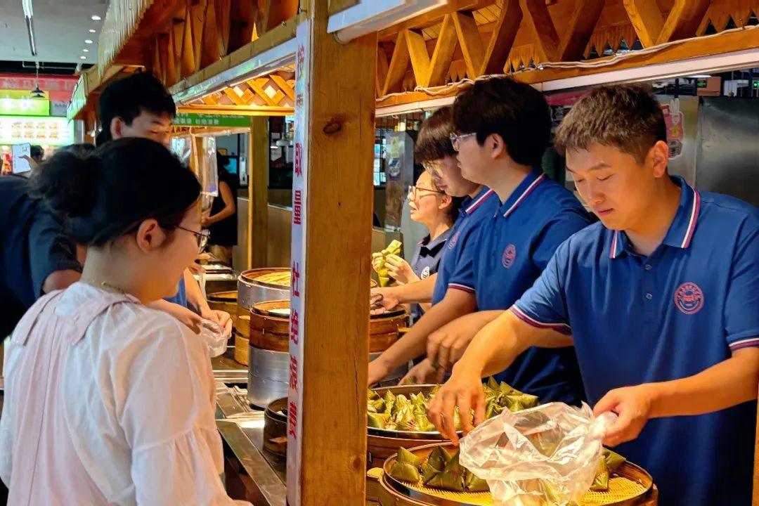 粽香浓郁,糯米飘香。一颗颗冒着热气的、软糯饱满的粽子从锅中拿出,同学们看见自己亲手包的粽子喜悦万分。活动结束后,参与活动的同学们也主动将粽子分享给身边同学,为他们送去一份节日的问候。