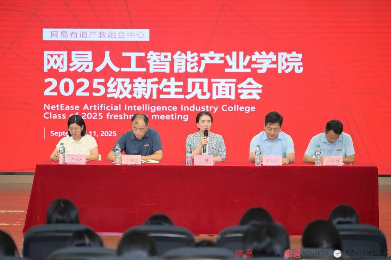 网易有道产教融合中心助理副总裁李兴华代表企业发言。李总围绕人工智能产业发展与人才培养展开论述,强调“选择未来技术领域,选择人工智能产业,就是选择面向未来、收获未来”。当前人工智能正从数据驱动走向“经验时代”,智能体经济正在形成,行业发展前景广阔。详细介绍了网易人工智能产业学院的建设规划:将构建“产业需求—课程开发—实践应用”闭环体系,通过全方位、全产业链的培养模式,助力同学们成长为人工智能领域的复合型人才。网易有道产教融合中心将引入企业实战项目和岗位能力认证体系,让学生在校期间就能积累产业经验,李总还给学生带来一大批“网易价值观大礼包”。