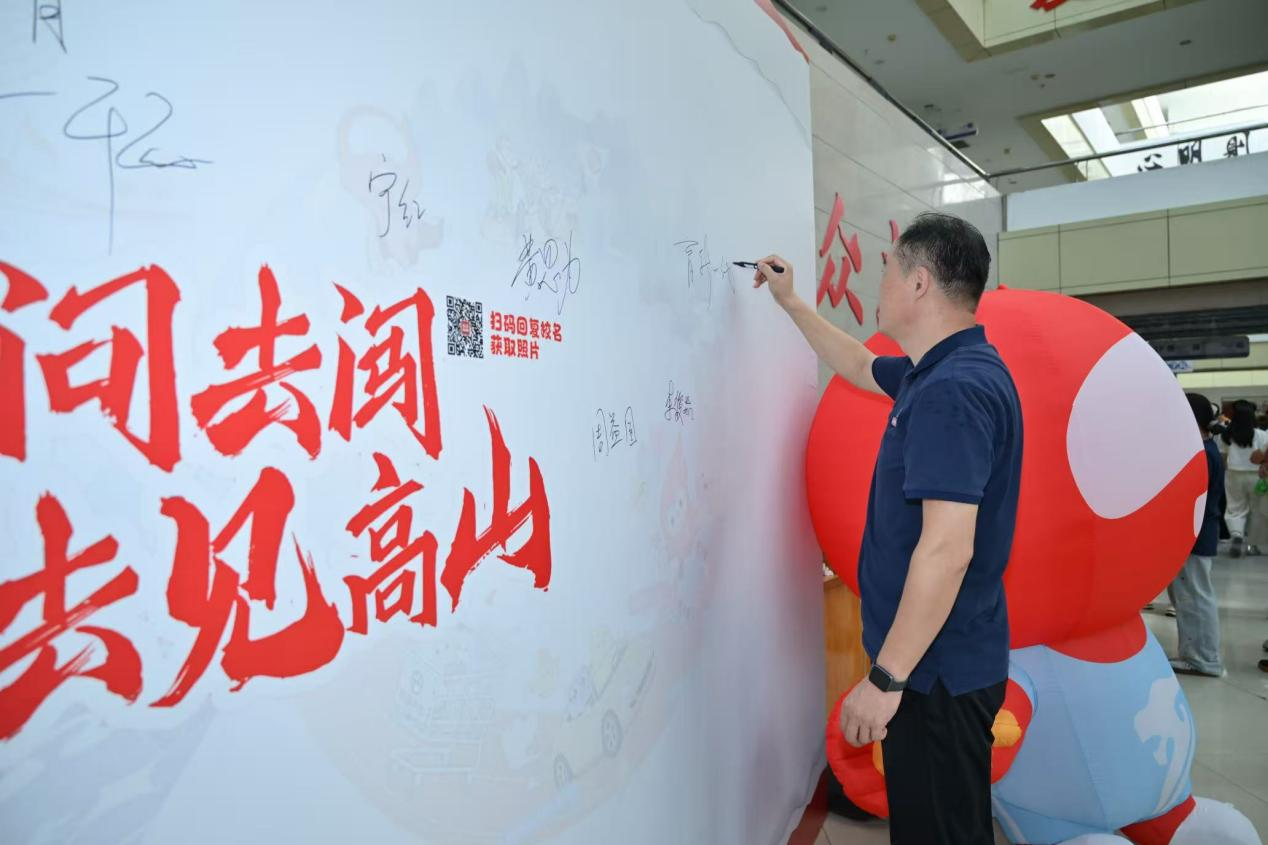 亲临网易有道人工智能产业学院迎新现场的领导有:江西应用科技学院党委委员、常务副校长干甜,江西应用科技学院党委委员、副校长谢远健,江西应用科技学院党委委员、副校长刘宇中,未来技术学院院长卞秀运,党总支书记卢胜勇,副院长赵应丁,副院长彭军等。学校领导、企业嘉宾也来心愿墙前打卡,写下对2025级学生满满的祝福。并在心愿墙合影留念,记录下自己在江西应用网易人工智能产业学院的初次“邂逅”。