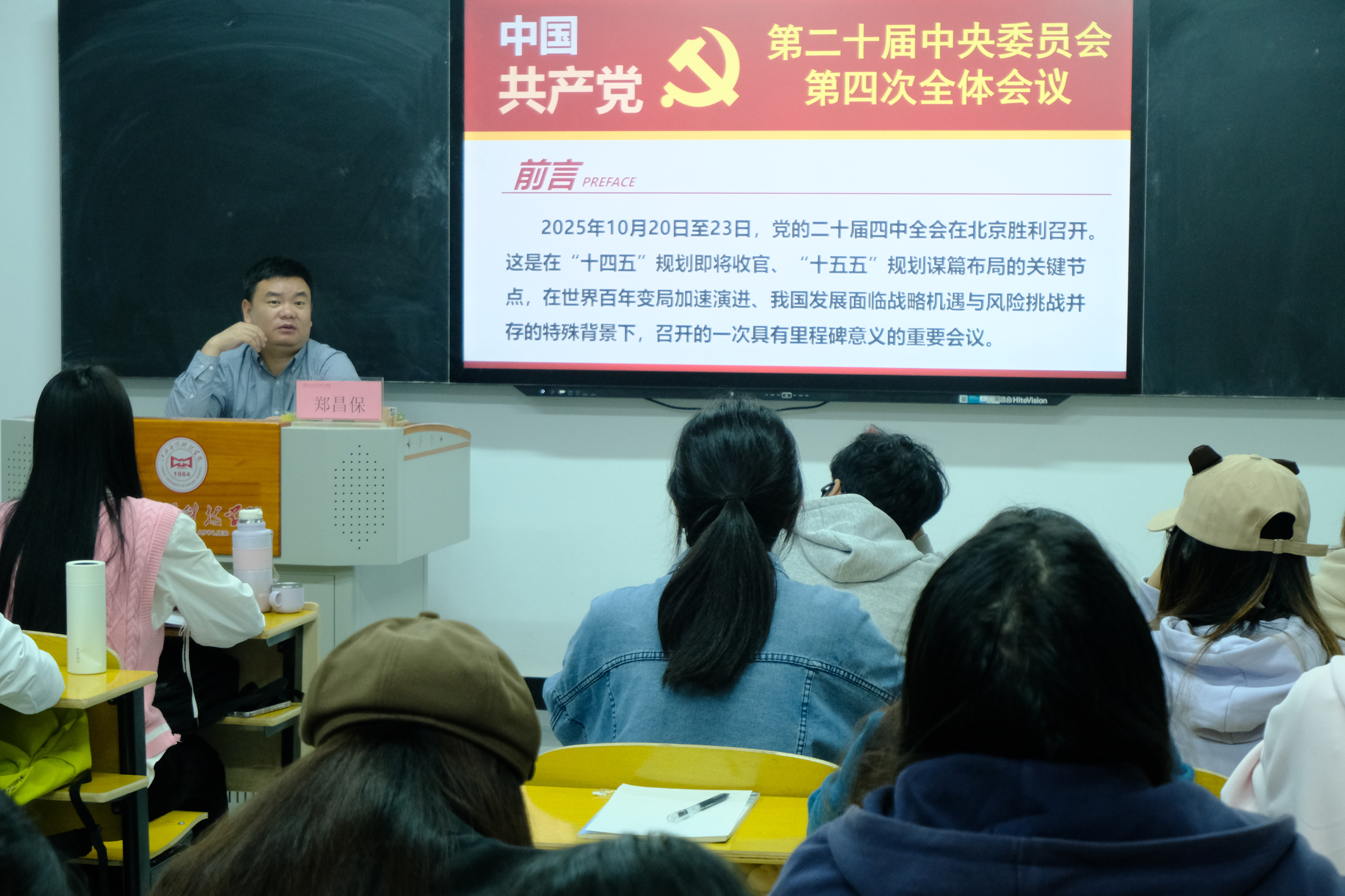 为深入学习贯彻党的二十届四中全会精神,引导全院师生把思想和行动统一到全会精神上来,11月2日晚,教育学院举行学习贯彻党的二十届四中全会精神宣讲会,邀请学校党委委员、宣传部部长郑昌保教授做专题辅导,教育学院师生代表参加。