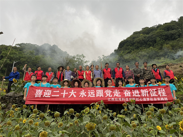 实践团队员们到了当地后,便戴上编织帽、手持镰刀铲头,在古棠村第一书记周理带领下和当地百姓的帮助下前往琴榜屯,踏上了去年与村民一同修建的“致富路”。“去年我们上山是为了修路,今年我们踏上修好的山路去种向日葵,说起来还是挺自豪的。”老队员朱广浩说。抵达向日葵种植基地,队员们学习村民们的样子,在山上将杂草锄净,再把种子一点点的埋入土壤里。实践团的队员们希望通过行动,为古棠村的乡村振兴发展贡献一份力量,相信古棠村“强、美、富”的美好蓝图定会变成现实。