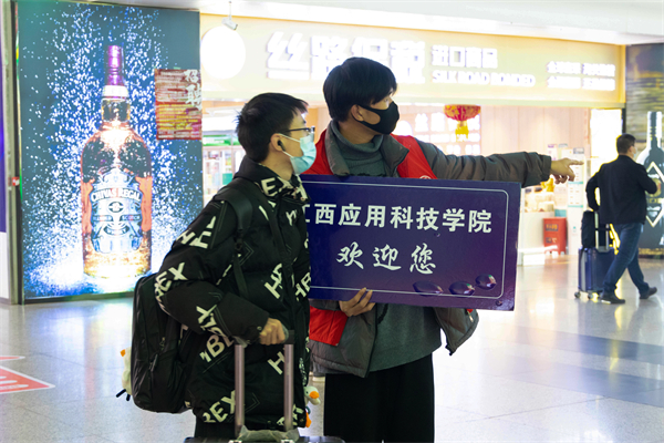 上午8时32分,从景德镇返校的大三学生李洪铨抵达南昌西站,刚走出出站口,“江西应用科技学院欢迎您”的接站牌就映入眼帘,校党委副书记江星,校长助理、学工处(部)处长黎晓明早已在西站等候,“同学,欢迎回家!你是我们在西站接到的第一位同学!”一句问候让李洪铨感受到倒春寒中的温暖,他说:“真的很意外,很惊喜”。带着喜悦、激动的心情,陆续到来的同学们在老师的引导下,核验身份,搬运行李,安全、顺利地登上学校的接站车辆,整个流程顺畅高效,井然有序。