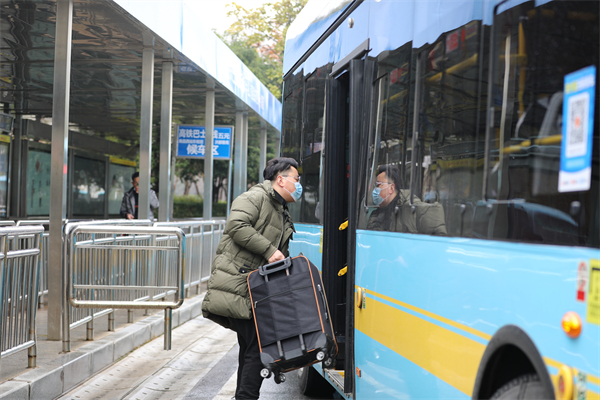 人工智能学院饶梓良同学说:“我是从吉安过来的,刚从车站下车,一下火车,南昌就下起了大雨,还好学校安排了“返校专线”,有了学校的“返校专线”我就可以直接回学校了,不需要再花费时间等公交车了”。