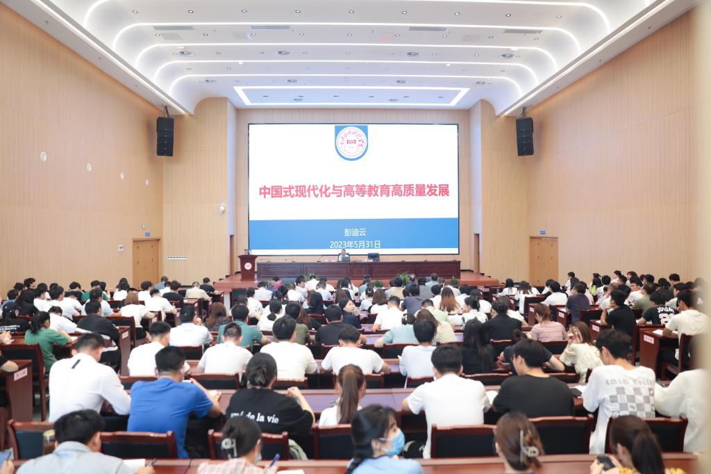 5月31日上午,江西应用科技学院党委书记彭迪云在三元大厦二楼学术报告厅作了题为《中国式现代化与高等教育高质量发展》的主题教育专题党课。校长江作军主持,全校副处级以上干部,2023年新吸收预备党员、发展对象、积极分子及部分教师党员代表等共计300余人参加学习。