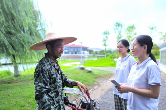 迎着酷暑暖风,聚村头,走田间,调查研究为农民。深入村委会、农家庭院,点对点沟通、面对面交流,了解每户劳动力就业及农作物种植情况,把有关乡村振兴的方针、政策带入千家万户,实践队将课堂学习和乡村实践紧密结合,学习“自找苦吃”精神,厚植爱农情怀,练就兴农本领,在“自找苦吃”中收获甘甜。
