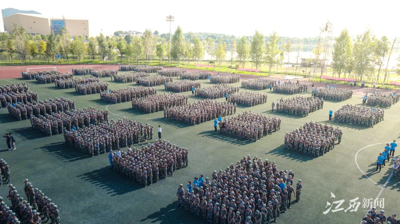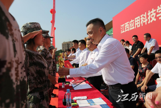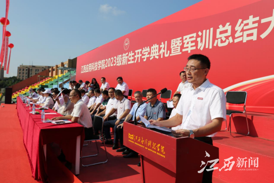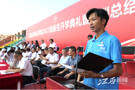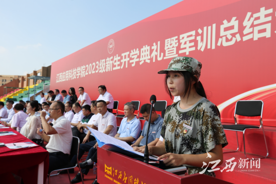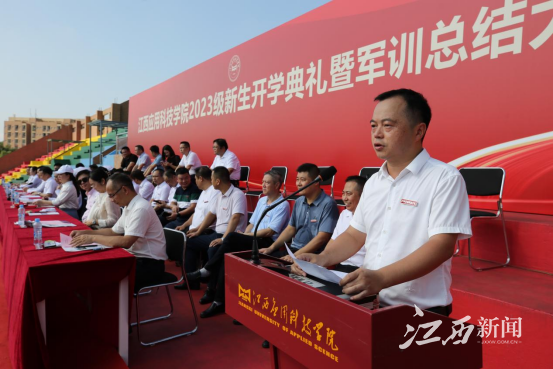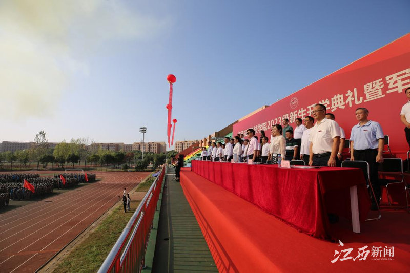 江西新闻客户端讯 近日,江西应用科技学院2023级新生开学典礼暨军训总结大会在学校星洲体育场举行。2023级新生踏着矫健步伐,排列着整齐方阵,向全体师生展示他们的全新面貌。