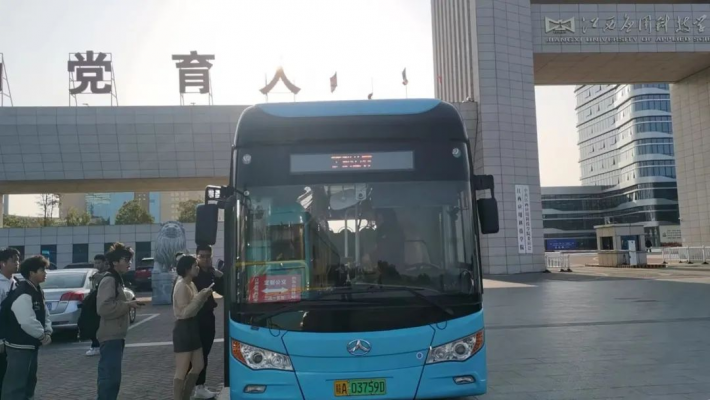 江西应用科技学院校园占地面积近两千亩,车行距离长达2.2公里,步行全程约30分钟。2021级播音主持专业的杨发强住在东校门附近的24栋学生宿舍。之前,他每次要提前半个多小时从寝室出发,步行到教室上课。如今,在宿舍附近就有“校园巴士”停靠点,他一出宿舍楼就可以很快乘坐“校园巴士”到达教室。“之前,我就一直盼望着学校里能有校园巴士,没想到这下真的有了。乘坐校园巴士,真的很方便,尤其是时间很赶时,大大节约了去上课路上时间”,学校里出现的校园巴士车让杨发强很是惊喜。