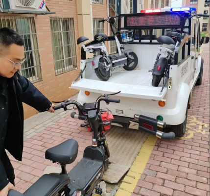 图为江西应用科技学院保卫处整治校内电动车以及乱停放问题