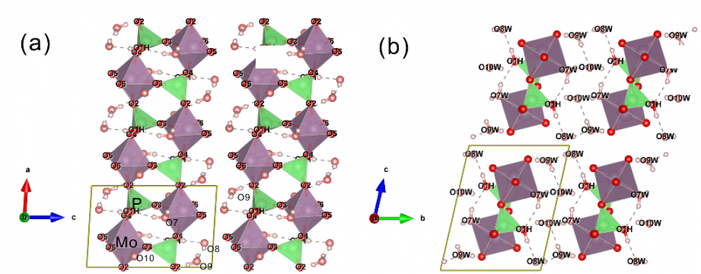 图3范光钼矿晶体结构中的链状构造及链间的通道水