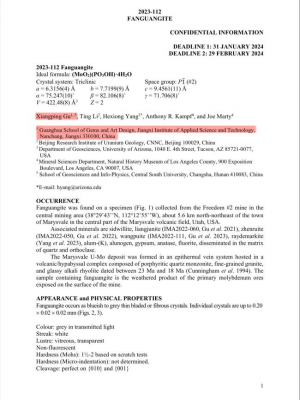 锚定“新质生产力”发展,江西应用科技学院高质量、高规格、高水平办学取得新突破。3月2日,由江西应用科技学院教授、著名矿物学家谷湘平博士,美国亚利桑那大学著名矿物学家杨和雄博士及核工业地质研究院李婷博士联合申报的新矿物——范光钼矿(Fanguangite),获国际矿物学会新矿物命名及分类委员会全票通过,批准编号:IMA-2023-112。这是江西应用科技学院董事长黄玉林依托江西优良地质资源,创立光华宝石与艺术设计学院,持续加大科研投入,紧盯国际前沿科技,积极培育新能源、新材料取得的又一重大科研成果。