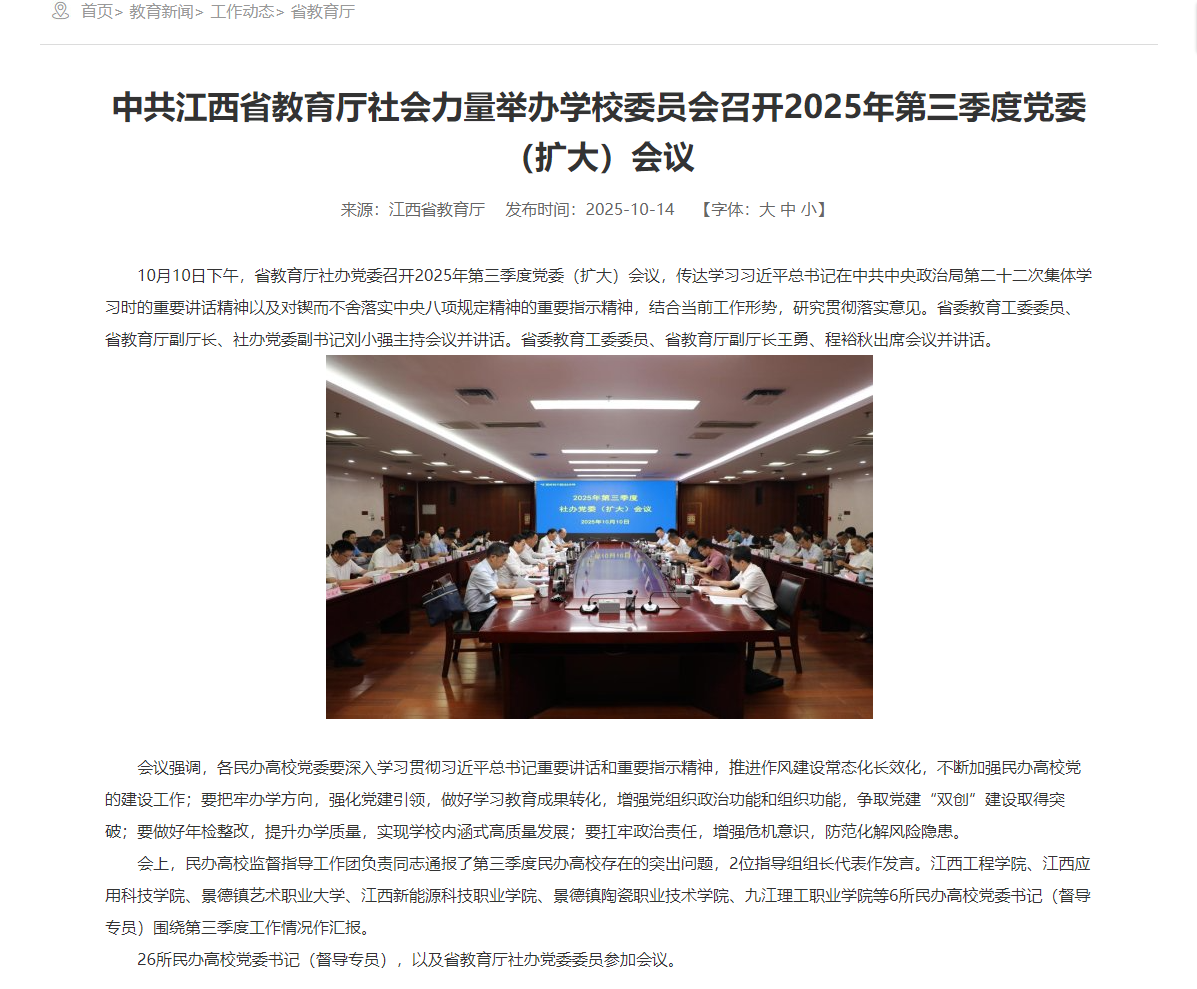 【江西省教育厅】中共江西省教育厅社会力量举办学校委员会召开2025年第三季度党委(扩大)会议